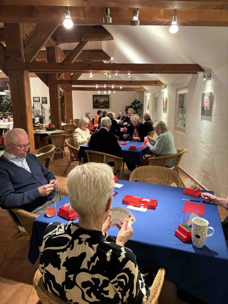 So endete ein rundum gelungener Nachmittag: mit guten Karten, feinem Gebäck, vielen Gesprächen und einer Stimmung, die deutlich machte, warum wir diesen Club so schätzen. Ein weihnachtlicher Ausklang, der uns bestens auf das kommende Bridgejahr einstimmt.