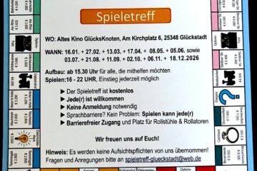 Beim Januar-Spieletreff im Glücksknoten ist nicht nur gespielt, erklärt und gereizt worden – wir haben außerdem den Initiatorinnen des Spieletreffs ein kurzes Interview gegeben. Stefanie Heinsohn, die den Spieletreff mit viel Engagement organisiert, hat mit uns ein Video gedreht, in dem wir den Bridgeclub Glückstadt vorstellen, über unseren Spielabend sprechen Weiterlesen